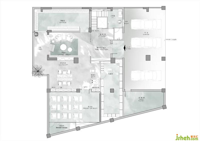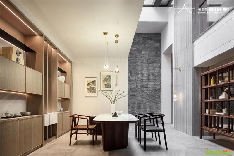 負(fù)樓層退合適距離為車庫(kù)入戶留出外前廳,整理過(guò)渡再入室內(nèi);解構(gòu)負(fù)二負(fù)一層功能動(dòng)線,調(diào)整樓梯位置于一處貫穿上下,設(shè)置電梯位置,挑空入戶玄關(guān)、合理規(guī)劃天井借光,將需要安靜的茶室、收藏間、家庭影院置于負(fù)二層;成就入戶高挑空玄關(guān)以及茶室,于青磚竹韻里一室干凈明。