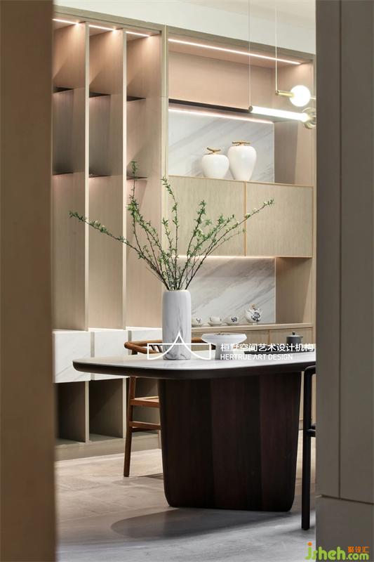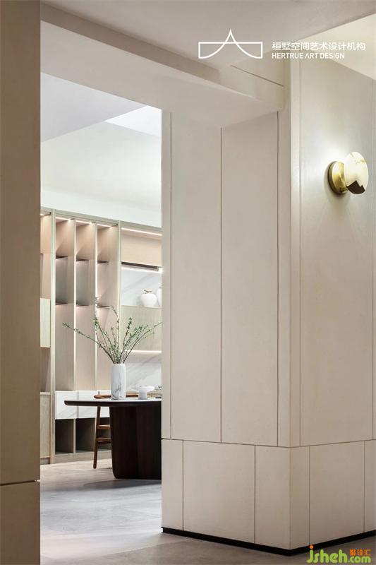 將中式線型留白意境重新組織語(yǔ)言,巧妙修飾大型承重柱并起到修平原來(lái)土建墻面基礎(chǔ)的嚴(yán)重錯(cuò)位不平整。