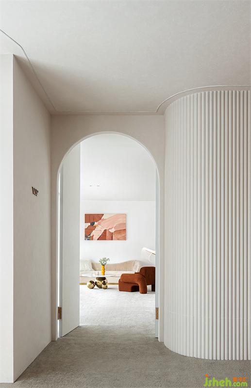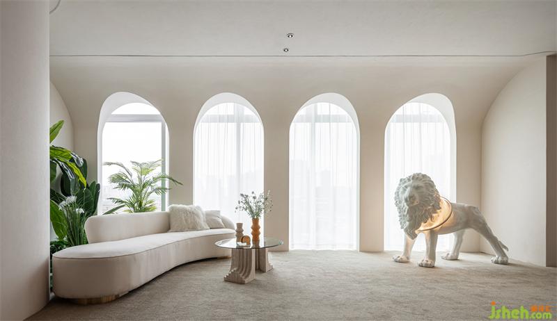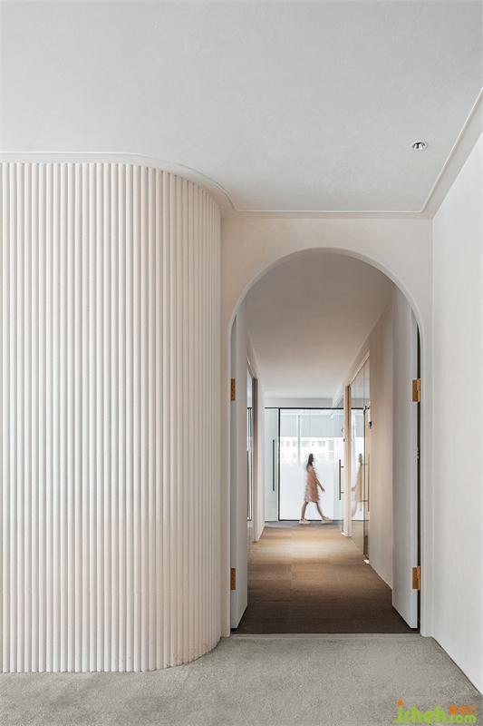 聆聽(tīng)白色的極致表達(dá),以弧線與曲面的組合構(gòu)架大型的白色幾何體量,流暢的弧線墻身往上延伸置頂,保持整體的靜謐感,讓豐富的結(jié)構(gòu)強(qiáng)調(diào)出空間與心靈的共鳴。