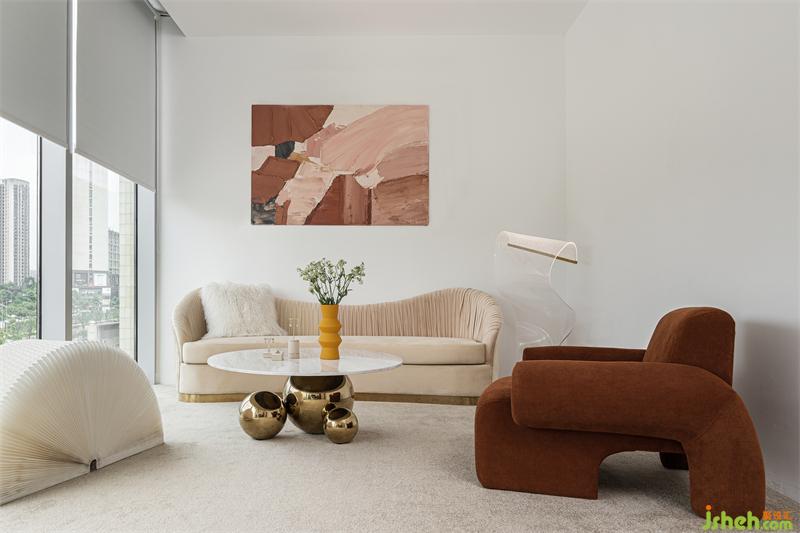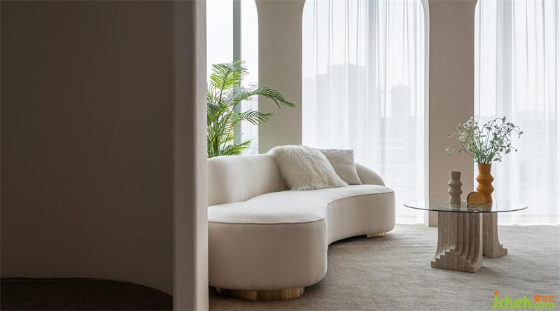 家具去掉銳利的棱角、卸下心里的防備,讓感受者沉浸在一片奶白色系中,回歸女性自我的一面,圓潤(rùn)造型與空間主打產(chǎn)品形成和諧共生關(guān)系,一切都順其自然。