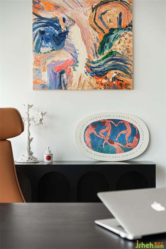 In the tone of brown and black office space, a warm mural color is stunning and mellow, brilliant and extreme, which explodes the extreme tension of space.
