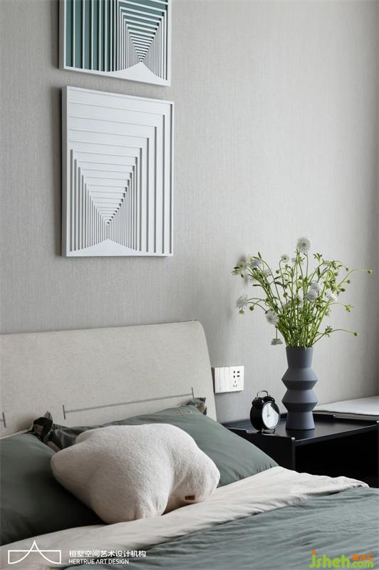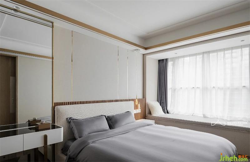 主臥采用中性灰色調統(tǒng)一雅致,