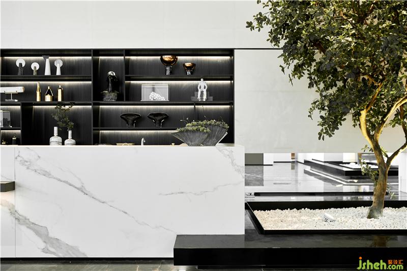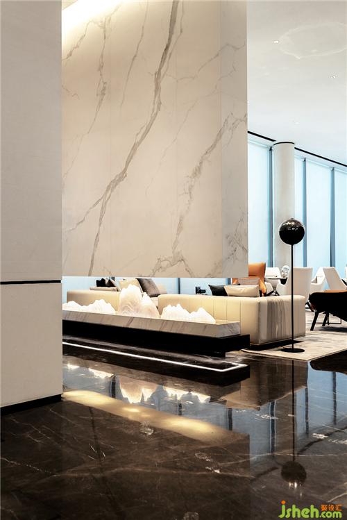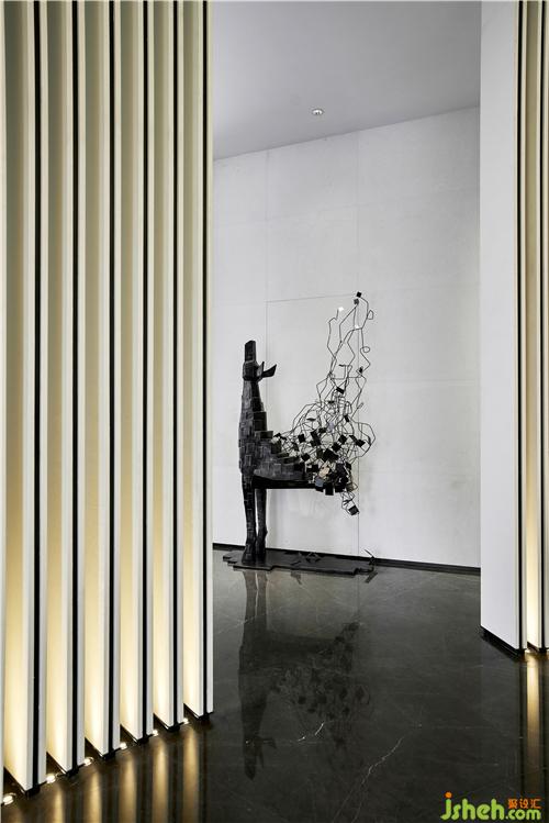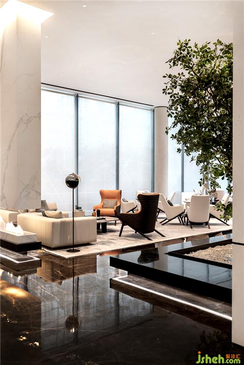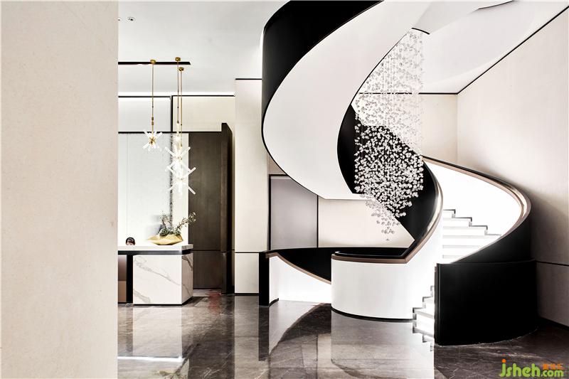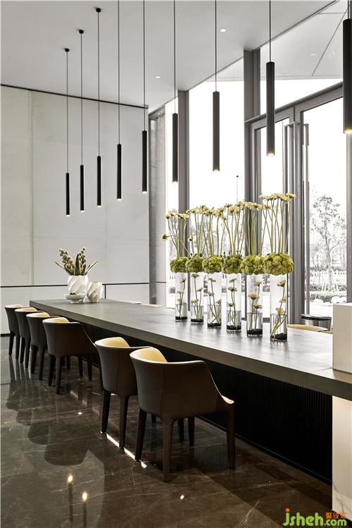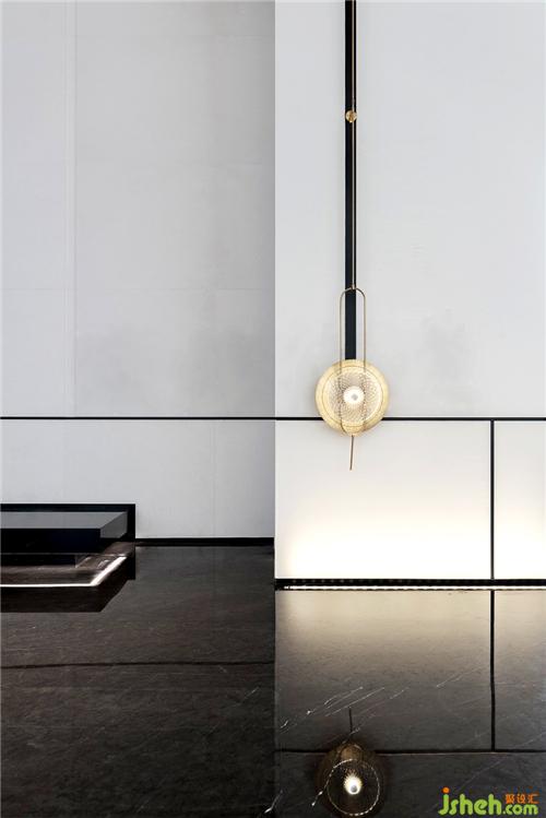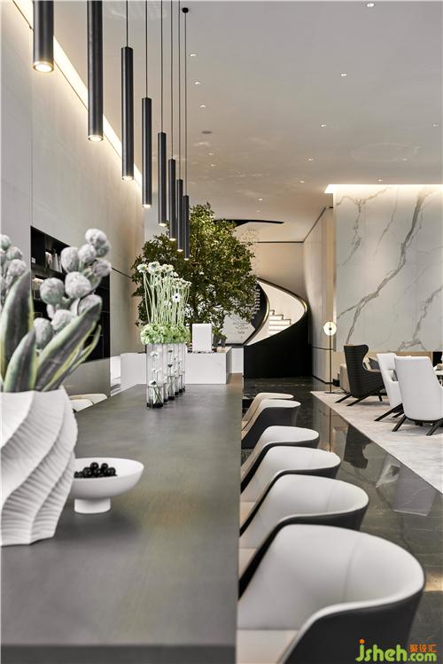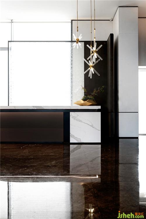 吊燈運(yùn)用金屬為主要的材質(zhì),配上黑色大理石的紋理作為呼應(yīng)。溫州售樓處設(shè)計(jì)整體提升了空間的品質(zhì)感和層次感。