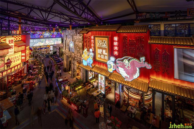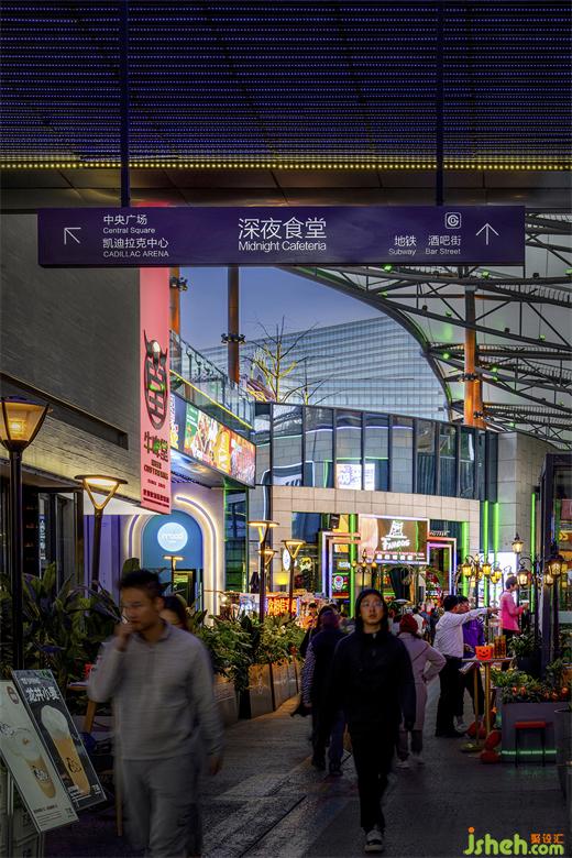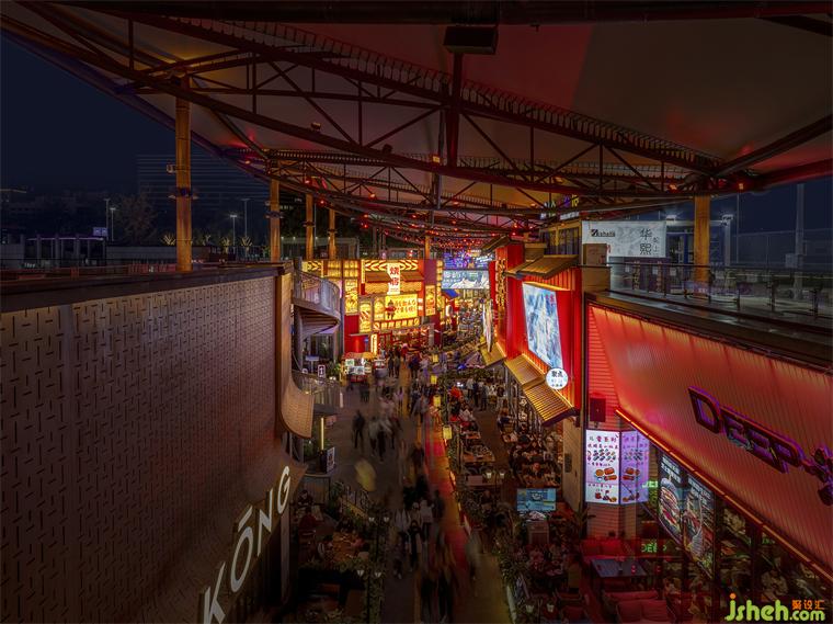 夜幕降臨,酒吧街迎來(lái)了最璀璨的時(shí)刻。建筑設(shè)計(jì)以復(fù)古風(fēng)格為主,紅色燈籠、古色古香的屋頂和滿(mǎn)墻的霓虹燈廣告牌,無(wú)不散發(fā)濃厚的懷舊氛圍。巧妙的布局營(yíng)造人流動(dòng)線(xiàn)和視覺(jué)焦點(diǎn),人們不斷被新的視覺(jué)元素吸引,保持著探索的興趣。