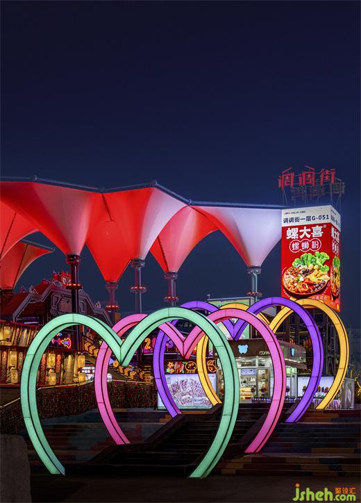 愛(ài)情廣場(chǎng)賦予了商業(yè)空間情感與溫度。溫暖的光暈柔和灑下,人們置身光影編織的愛(ài)情隧道。人性化的裝置場(chǎng)景打造愛(ài)與連接的情感匯聚點(diǎn),層疊交織出濃濃的浪漫氛圍。