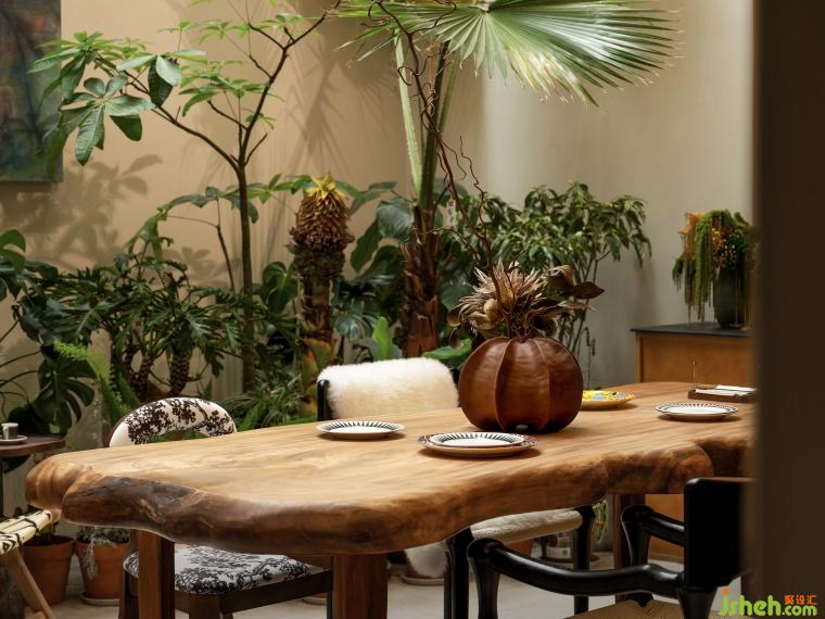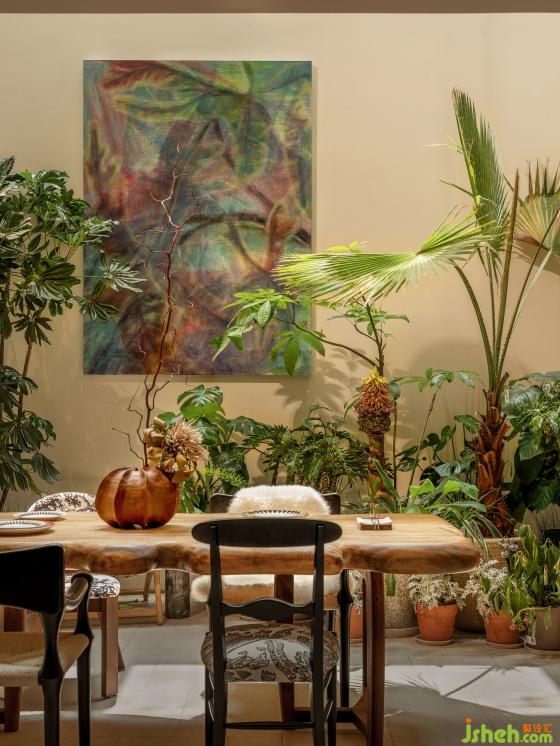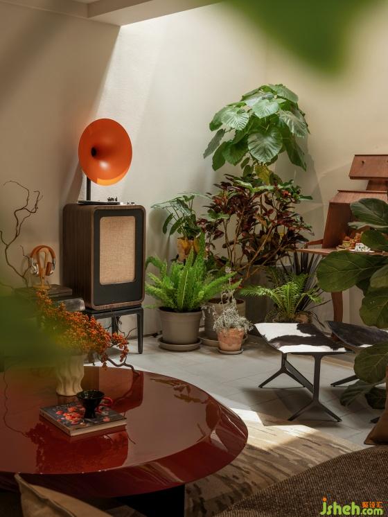 很難想象設(shè)計(jì)師在這個(gè)地上一層、地下兩層的格局內(nèi)置入了一個(gè)“四季花園”,躍墅設(shè)計(jì)借用天井引入自然光。這座自然和精神共享的堡壘,以自由迷人的盛放為整個(gè)家寫下序言。