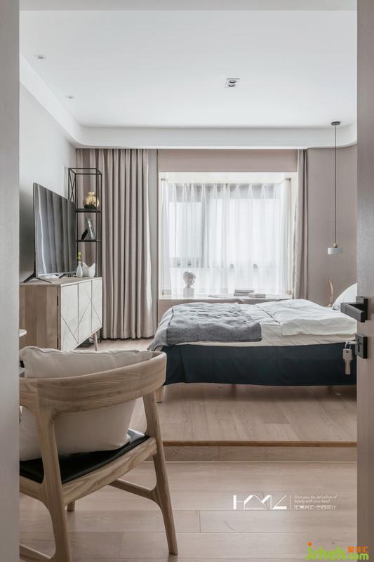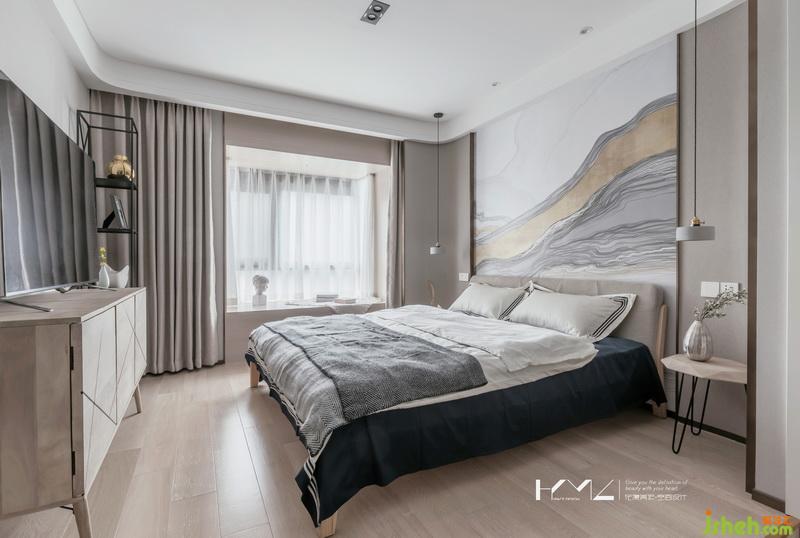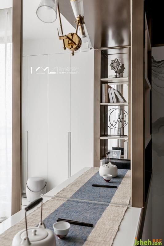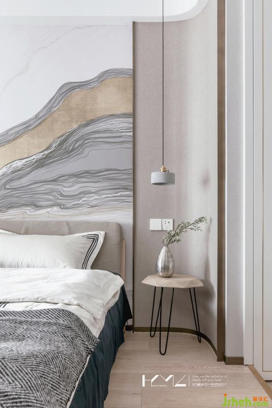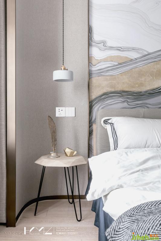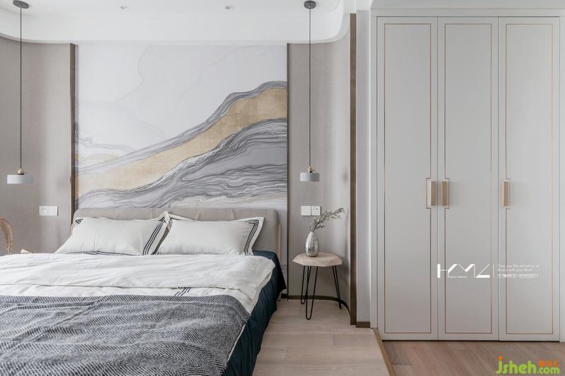 主臥地面通過高低差區(qū)分開來睡眠休息區(qū)和辦公更衣區(qū),這也是業(yè)主向我們提出的想法,希望空間能夠更加的細致,層次更加的豐富,衣柜柜門細節(jié),我們設(shè)計了金色中式裝飾框,著色很精致的銅制把手,豐富了細節(jié)感,床頭背景的寫意現(xiàn)代山水畫,凸顯了空間的莊重中式風(fēng)味,在這樣色彩比重很舒適的空間中,人感官會很舒適,亦不會審美疲勞。