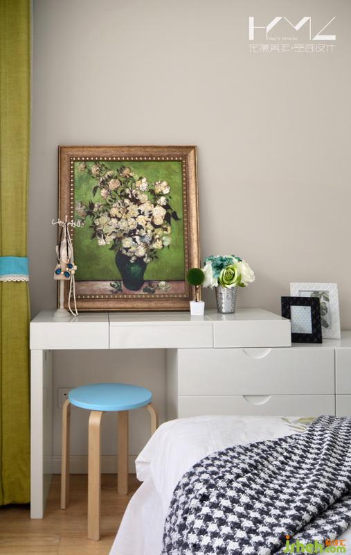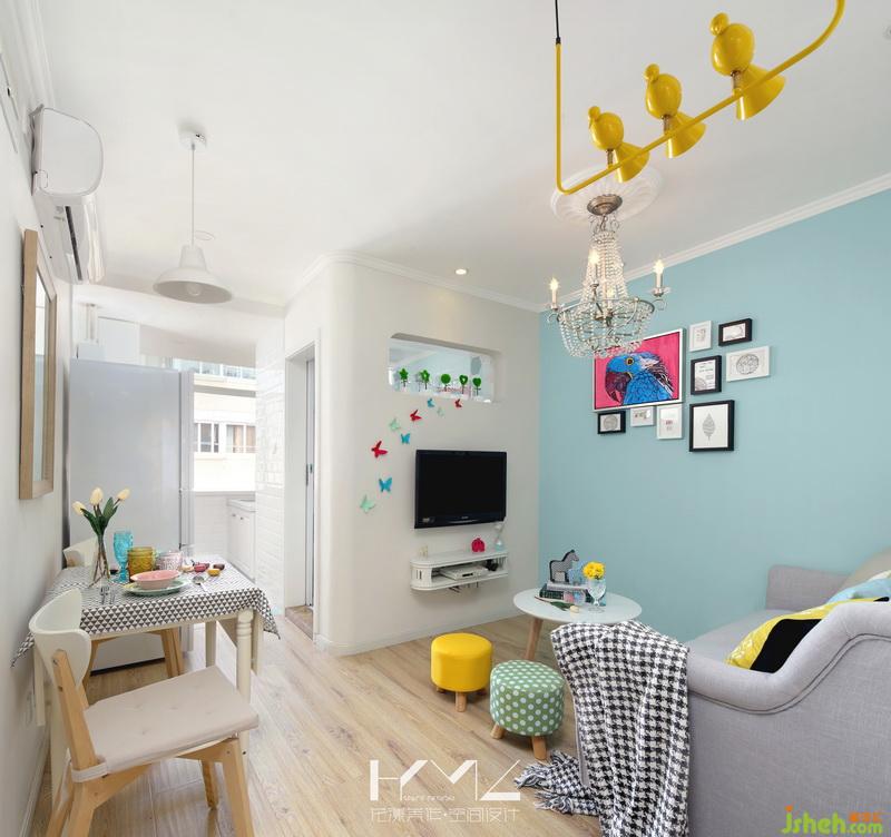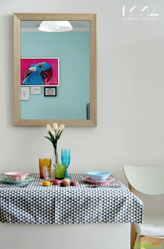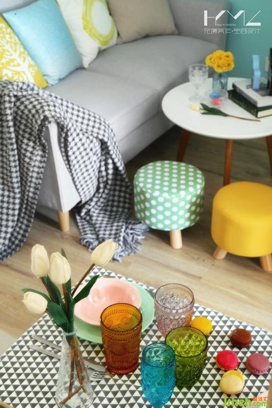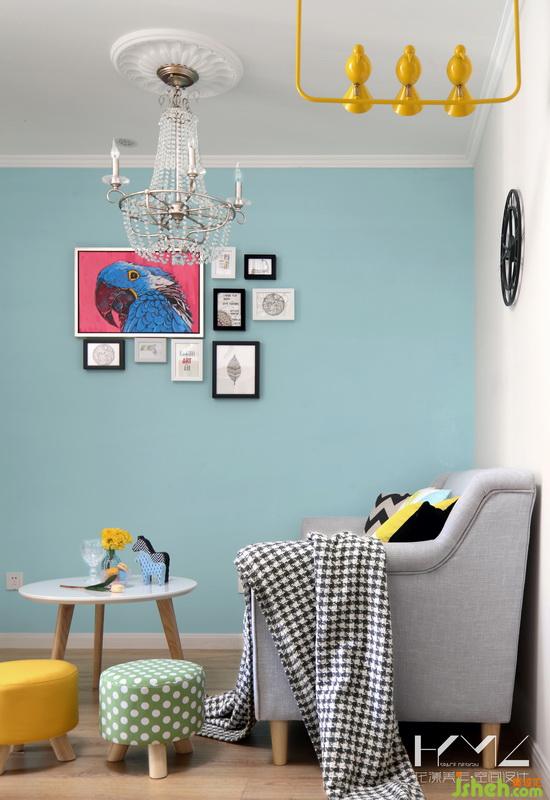 在初步溝通的時候,《虎媽貓爸》正在熱播,女業(yè)主很喜歡里面學(xué)區(qū)房給一家三口帶來的溫馨風(fēng)格,我們室內(nèi)設(shè)計師在看過之后,也深深地為“虎媽”的裝修功底折服。于是我們室內(nèi)設(shè)計師將“虎媽”家的風(fēng)格沿用到業(yè)主家,一開始就將青、橙、黃、玫、綠幾個色彩組合定義融合到整個房屋設(shè)計之中,主色選用的是Tiffany藍色,這種色彩的飽和度不高,讓空間少了粘膩感,多了陽光呼吸的氣息,高飽和度的亮色軟裝點綴反而讓空間顯得清爽。