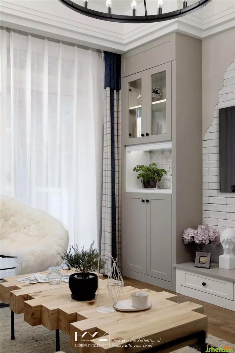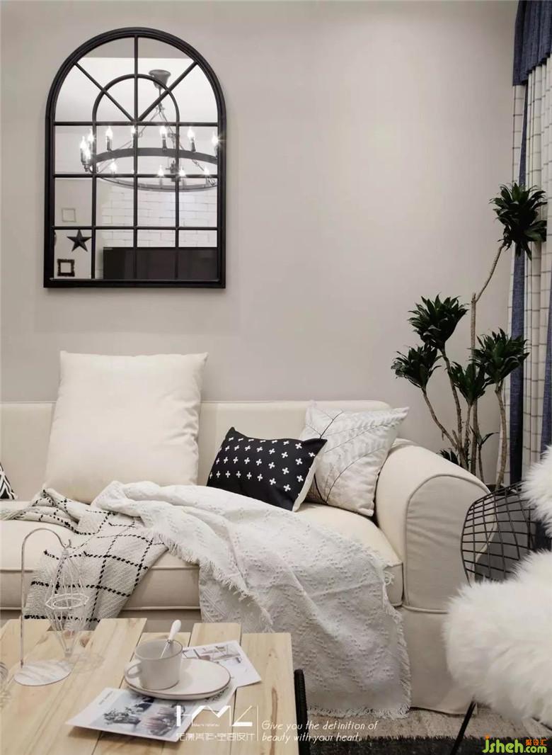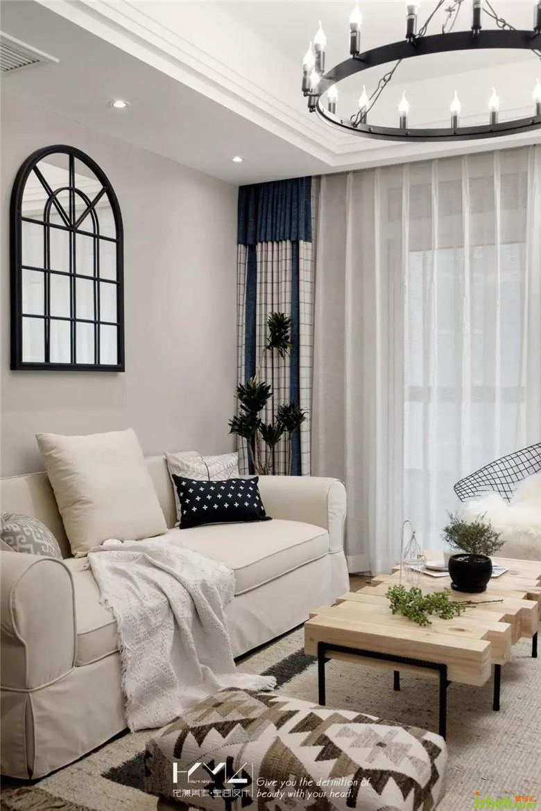 米灰色的墻面,配上同系列淺色系的沙發(fā),給人一種融入感,整體感,使得整個客廳豐富但又不顯的臃腫,黑框銀鏡、黑框架藤椅、黑色鋼管茶幾腳腿、黑色圓框蠟燭燈飾,各種黑色鐵藝在整體中點綴,裝修公司讓原本慵懶的美式空間多了一份休閑工業(yè)味的混搭。