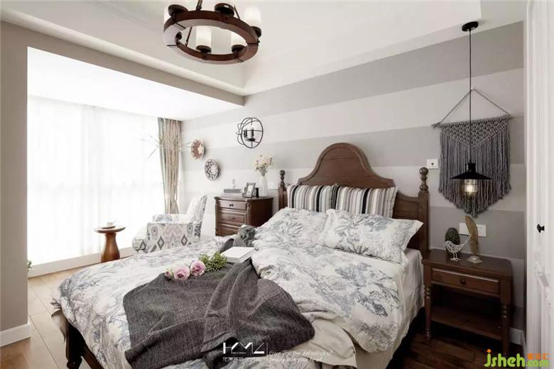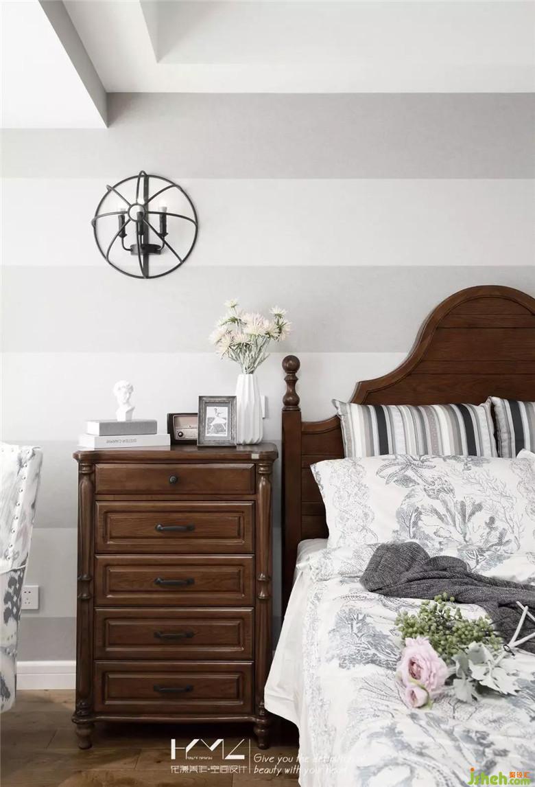 主臥室裝修公司延續(xù)了客廳的混搭風(fēng)格,美式的胡桃木家具,帶點(diǎn)工業(yè)風(fēng)的黑色框架燈飾,藏藍(lán)色的床品點(diǎn)綴,美式懶人沙發(fā),坐在落地窗前,喝著幽香的下午茶,陽光溫暖整個臥室,所有工作和生活的煩惱都拋之腦后。