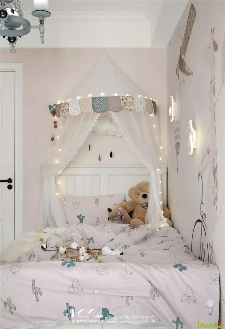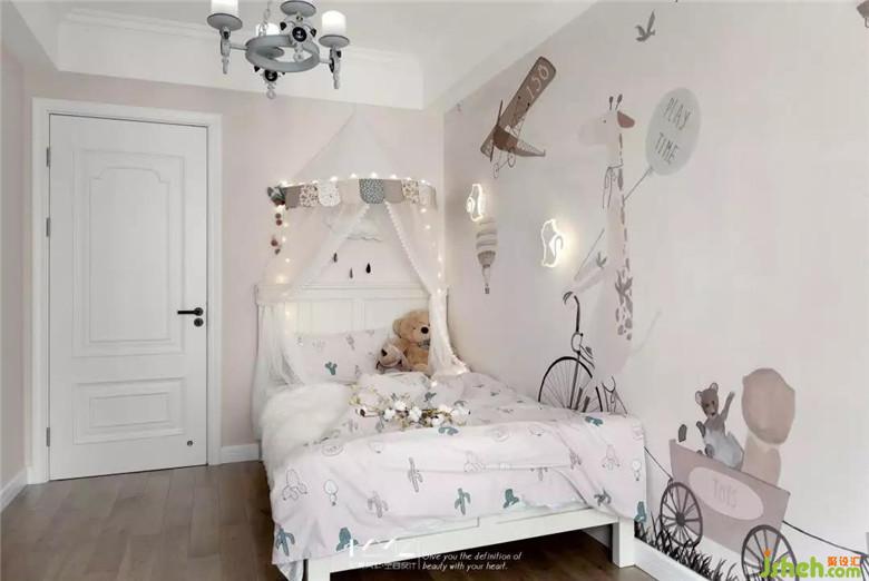 房主人的小公主還小,公主房并沒有給予過多的裝飾,簡單的卡通壁畫,可愛的小壁燈,給小公主的黑夜營造著安全感。等小公主長大些,裝修公司將房間留有很多空間,可以開發(fā)小公主的設計思想,孩子的想法總是那么可愛。