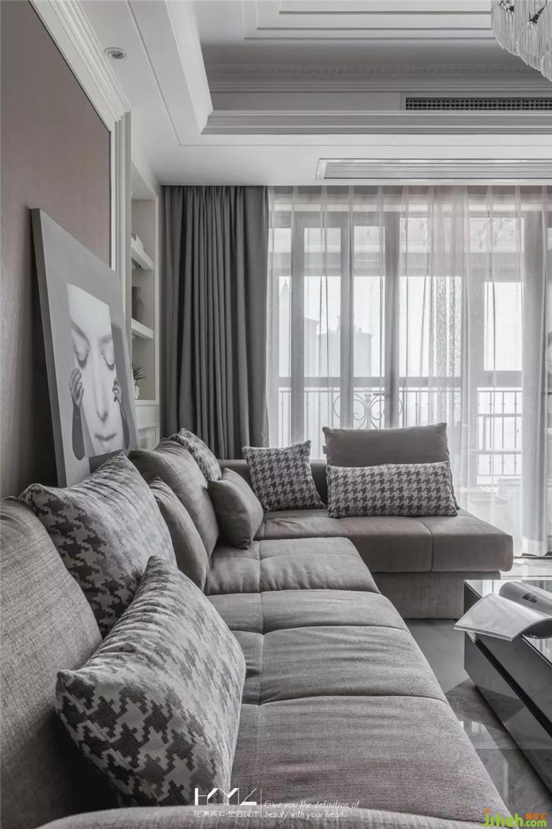 客廳有三個過廳,拱形門洞的造型加上高柱腳,電視背景這側的與對面的正好是中軸對稱的布置形式,三個拱形門洞瞬間提升了空間的高貴典雅的氣質。