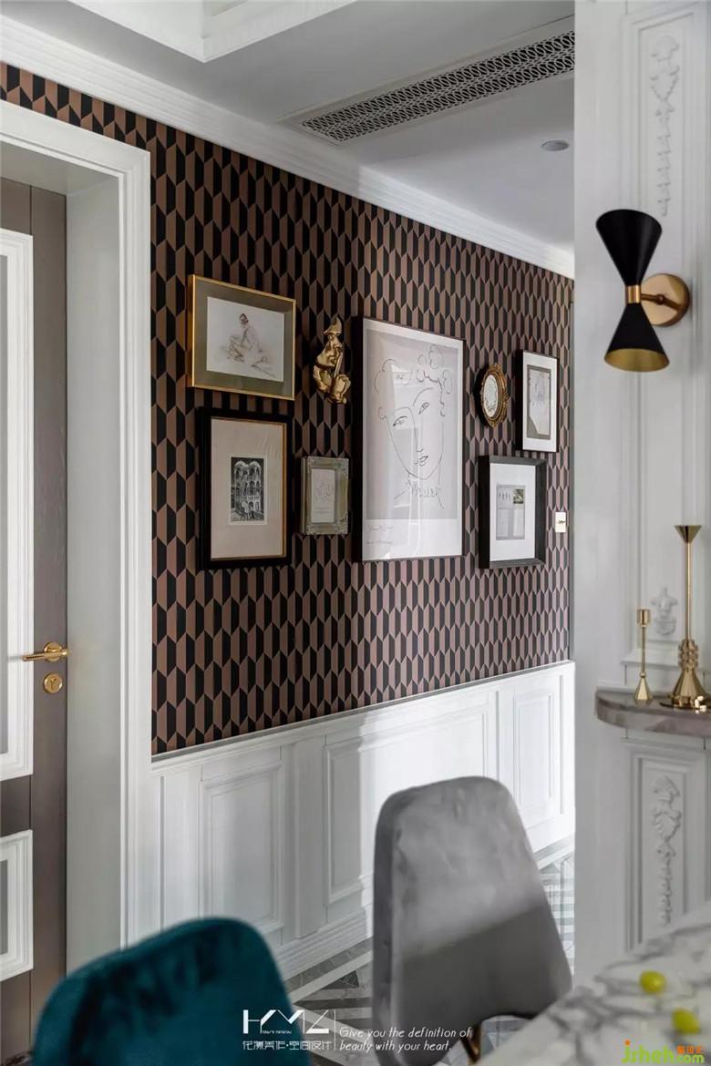 過道盡頭,為業(yè)主夫婦精選了一幅很有寓意的裝飾畫《幸?!?,意在祝福他們的家庭幸福美滿。