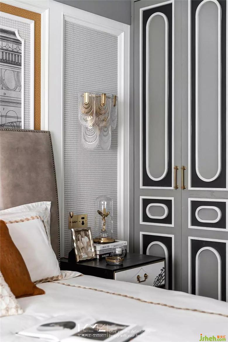 皮革鉚釘?shù)母弑炒玻鹳F而又懷抱安全感,中式復(fù)古的床頭柜打破界限的存在我們美式空間里,中西合璧貫穿始終。