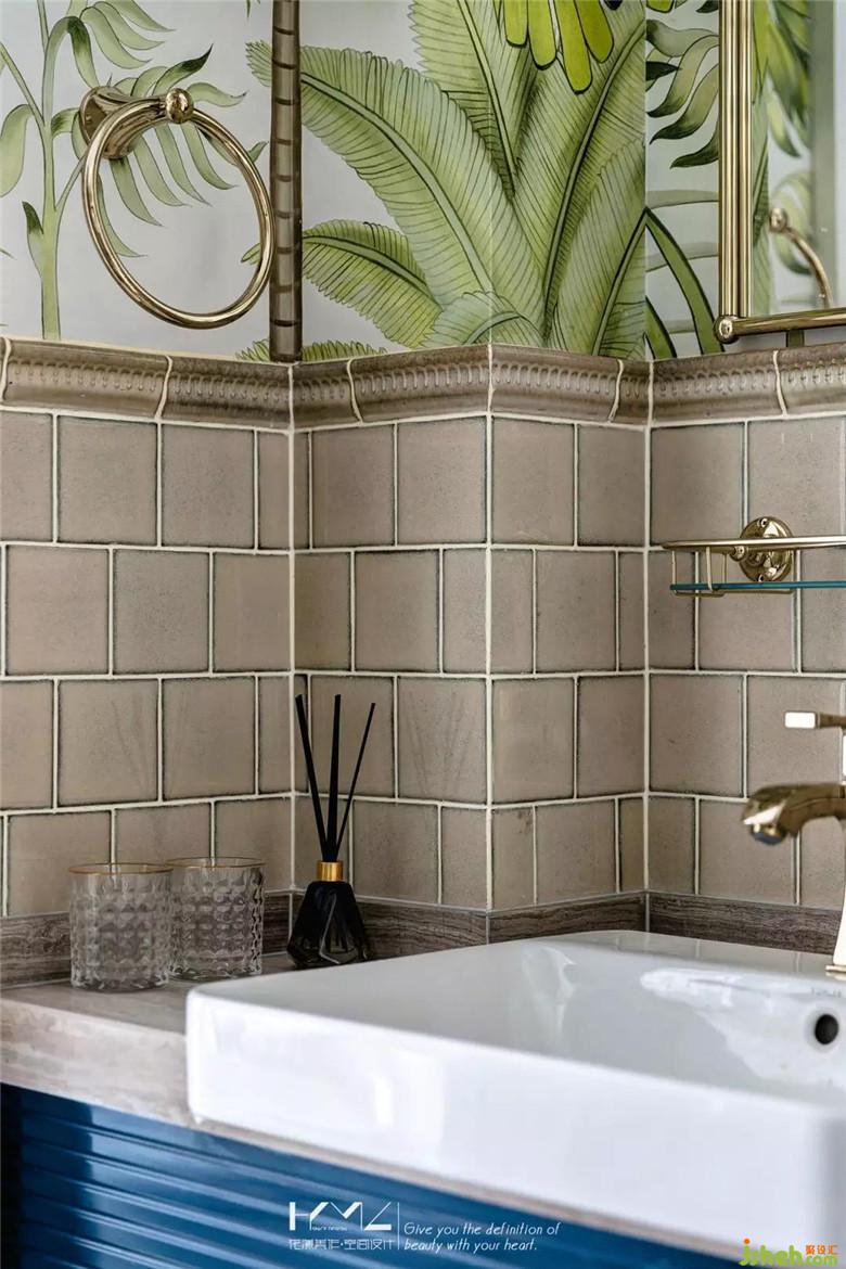 客衛(wèi)是家里唯一的濕區(qū),裝修公司選配了一種紋理夸張藝術(shù)的磚整鋪,淋浴地面的凹凸流水槽也是用同款磚加工而成,這樣空間就完全整體了。