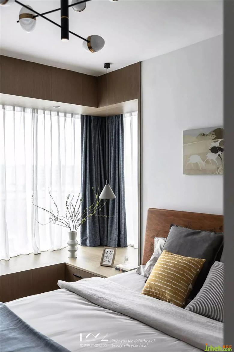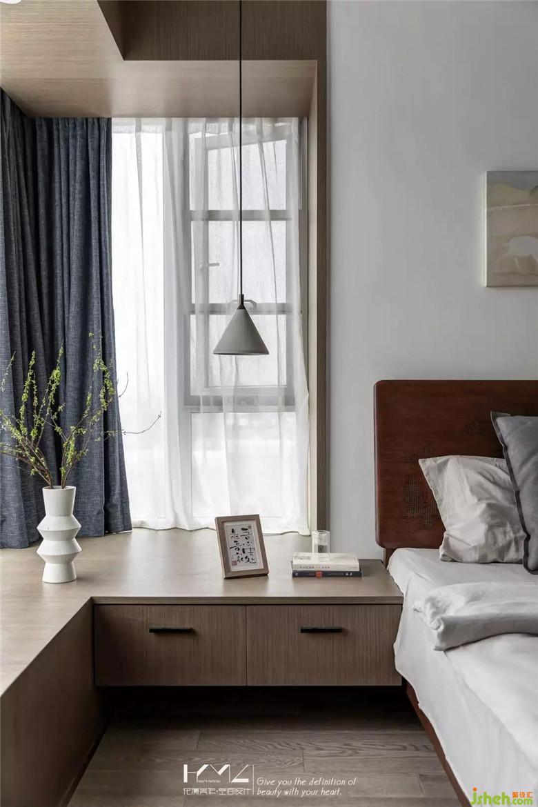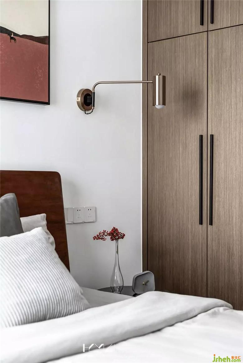 主臥墻面整體灰色仿石磚貼面,追求統(tǒng)一簡約,在地面鋪貼上,選擇了三個色度不規(guī)則的拼貼,統(tǒng)一中尋求些許的變化。