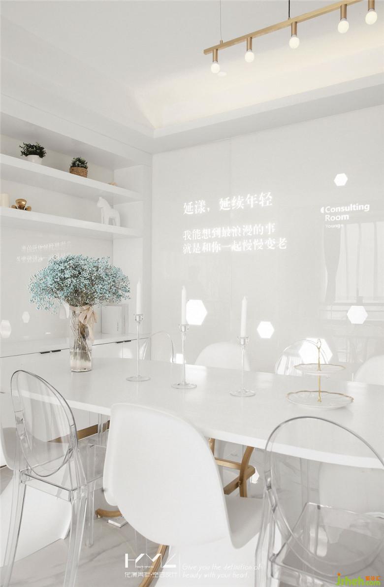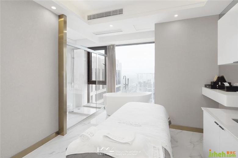 美容區(qū)通道全部采用超白玻結(jié)合整體燈箱照明,裝修公司以白凈設(shè)計主題結(jié)合各類白色材質(zhì)元素,利用led背景光板使空間有種時光隧道的穿越感。