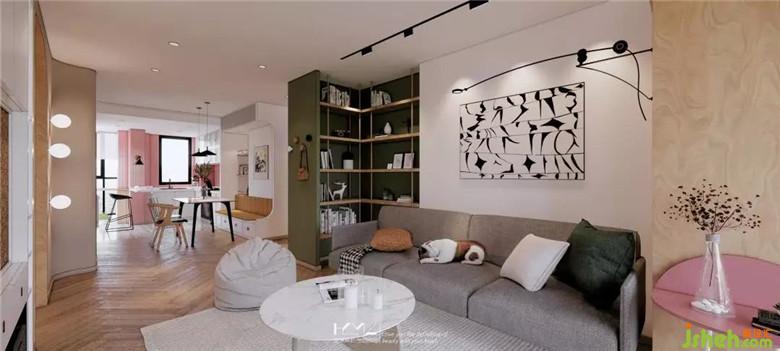 女業(yè)主是幼教,喜歡跳躍的色調(diào)。孩子大量的玩具,對收納的要求也是很高,綜合考慮了,儲物柜、收納柜、開架等形式,裝修公司將客餐廳公共空間的柜式空調(diào)和壁掛空調(diào)融入到整體設計中,保證了空間的美觀...