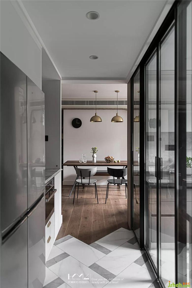 過道地磚與客餐廳地板銜接