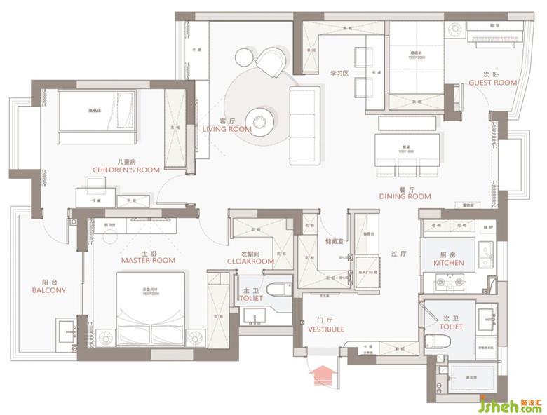 柜體考慮了常規(guī)儲物以及書籍、玩具收納