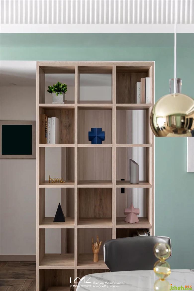餐廳與內(nèi)過道之間,半通透的展示書架