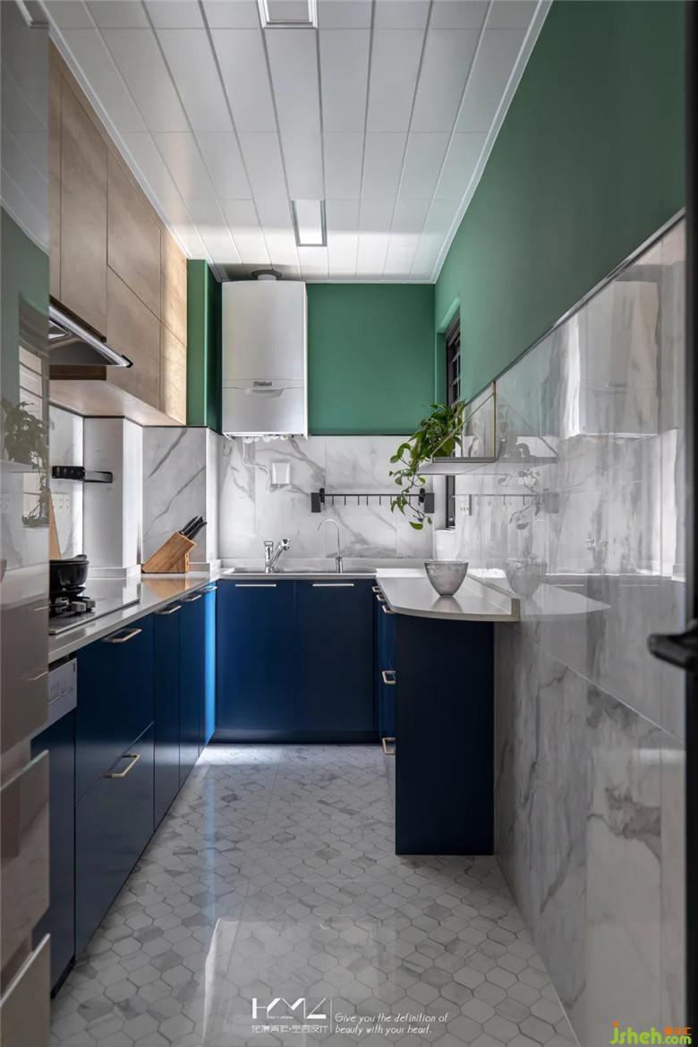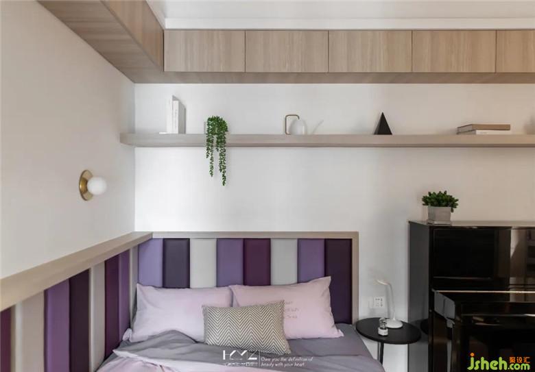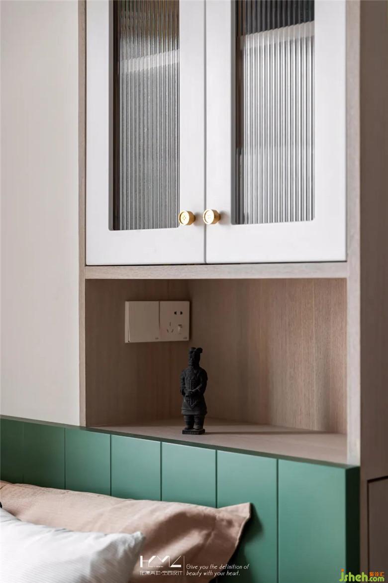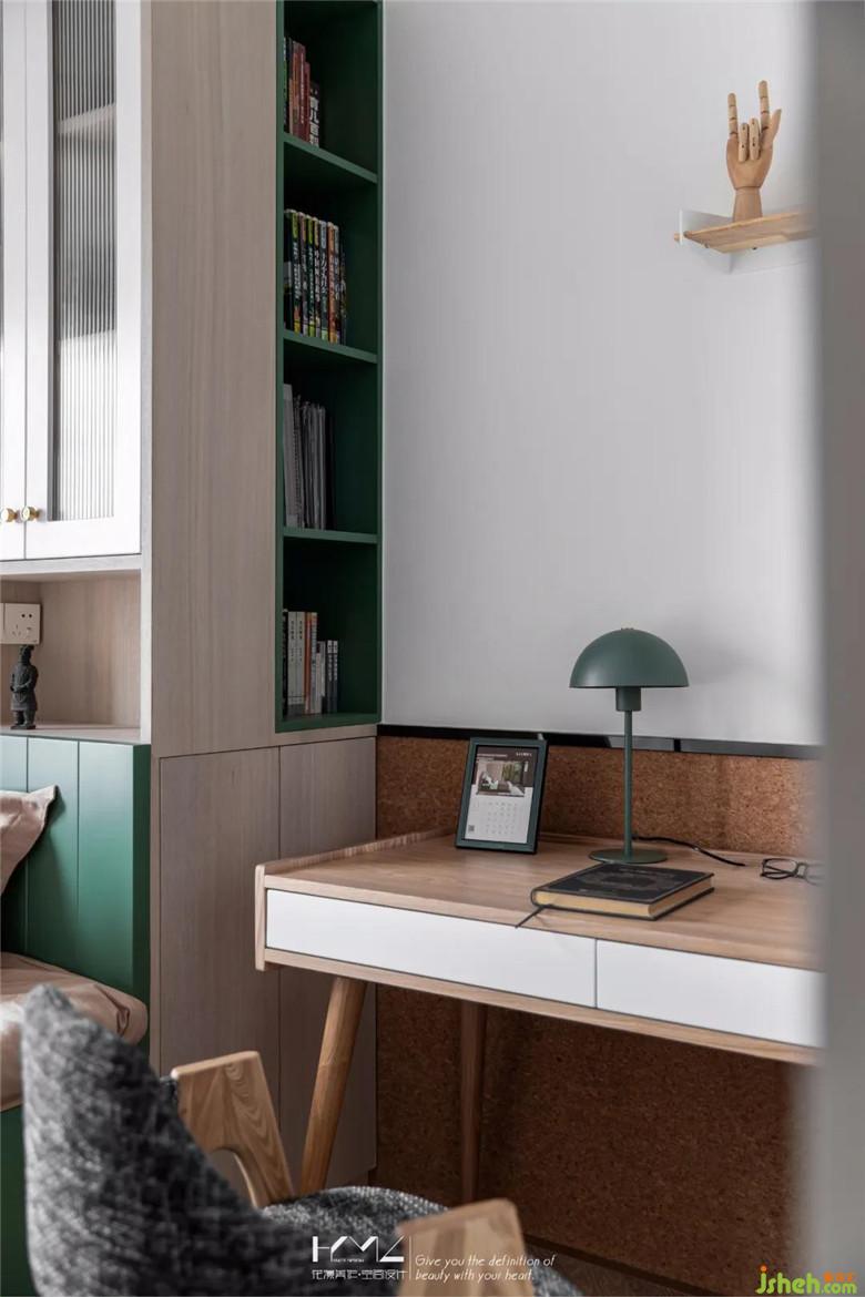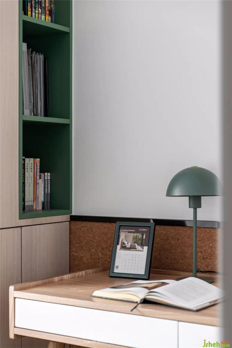 裝修公司利用榻榻米側(cè)柜柜體深度,將開(kāi)架書(shū)柜納入其中