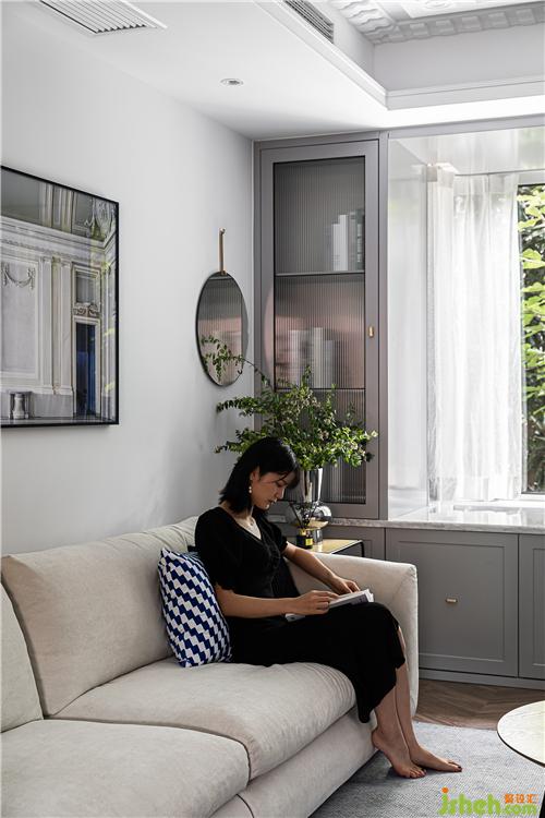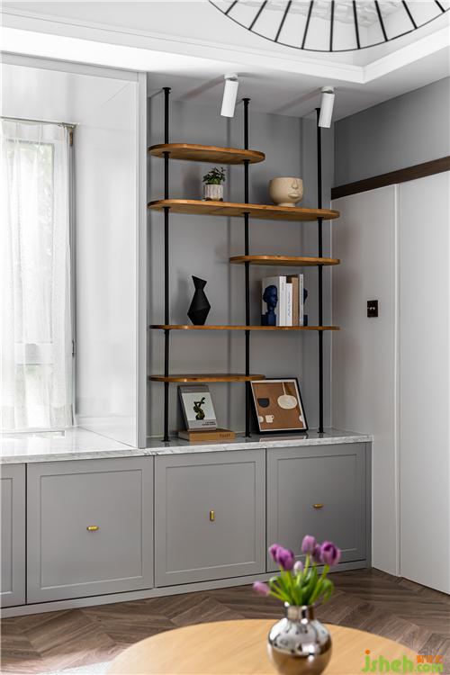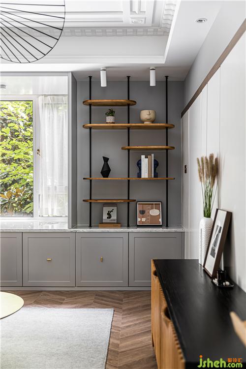 飄窗臺(tái)下方,整排實(shí)用的儲(chǔ)物柜