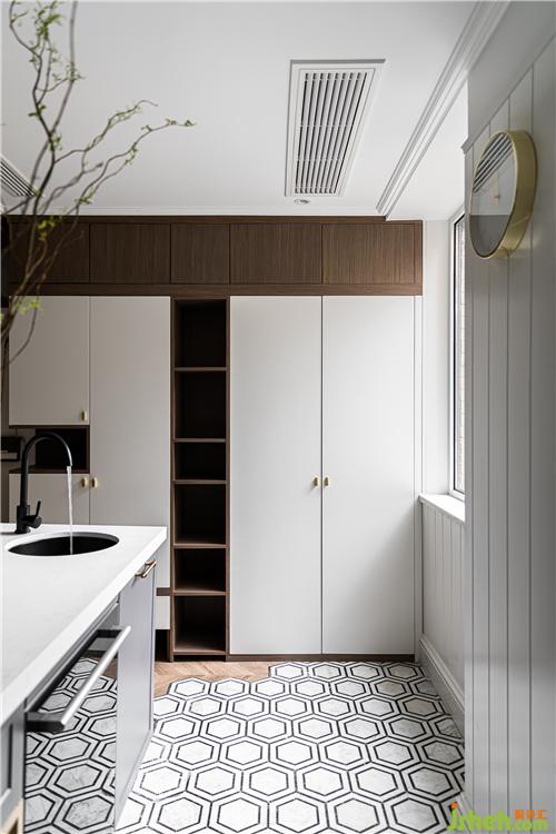 搭配胡桃色地板,寧靜優(yōu)雅的空間氛圍呼之欲出