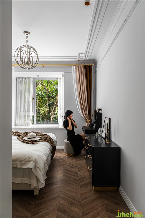 Tie-in walnut color floor, quiet and elegant space atmosphere is vividly portrayed