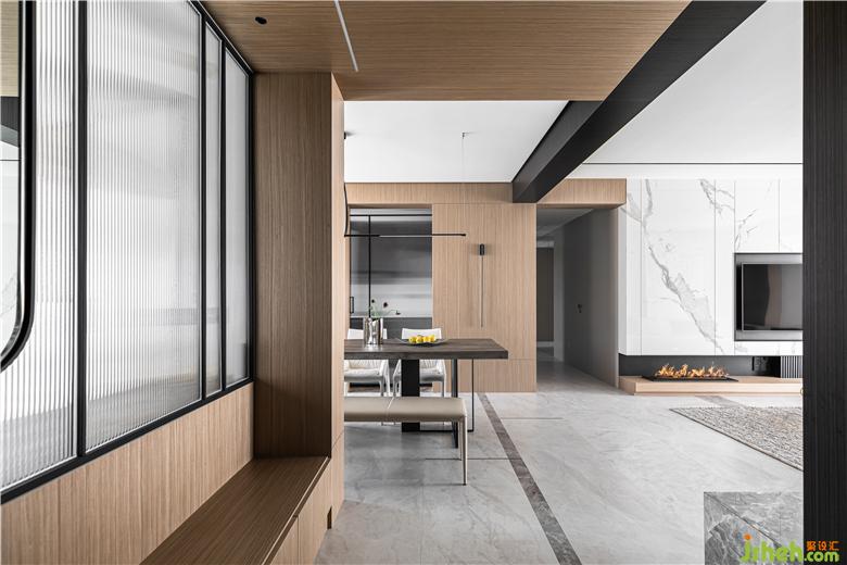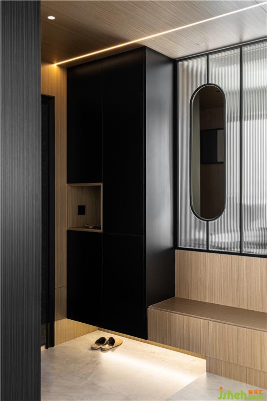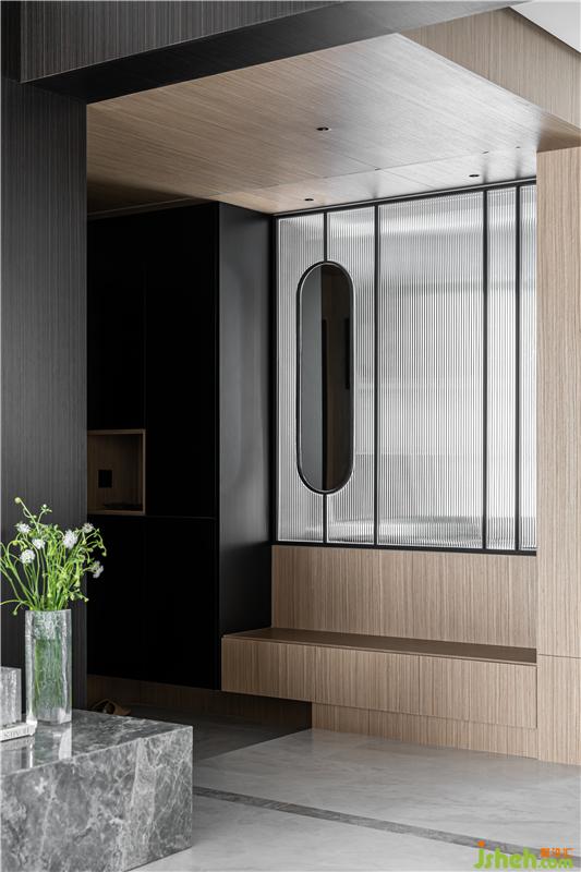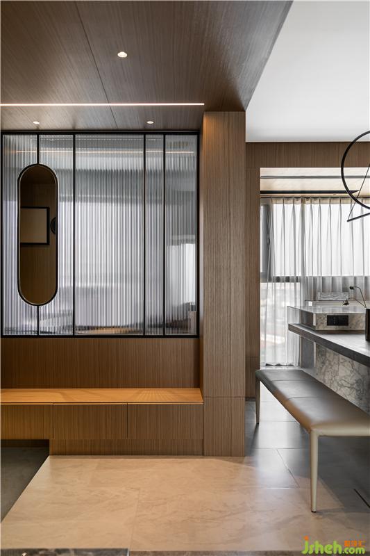 杭州家居裝修設(shè)計(jì)破除入戶隔墻阻擋,加強(qiáng)雙空間聯(lián)動,利用玻璃隔斷的光影,材質(zhì)對比,營造入戶視覺通透質(zhì)感。