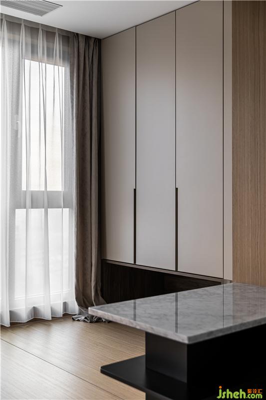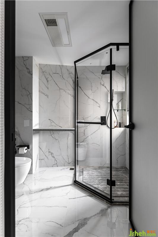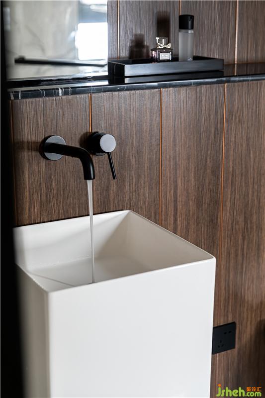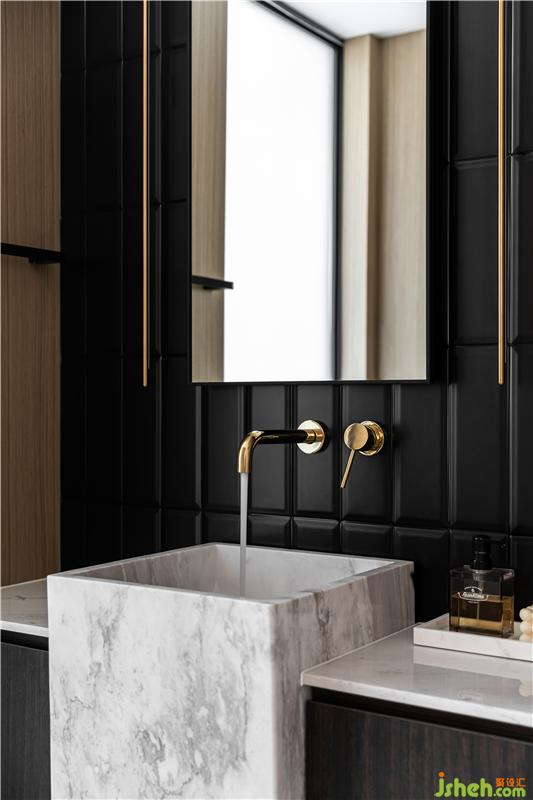 五金件均采用了預(yù)埋手法,石材紋理與黑色五金的材質(zhì)對比,細(xì)膩質(zhì)感延伸至每個角落.
