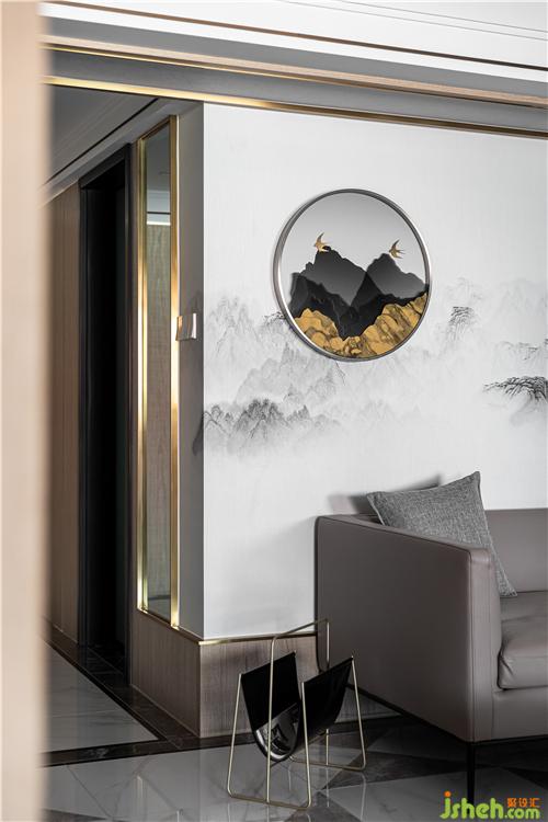 The shop that follows guest dining-room floor tile sticks a form, the compact sense of long and narrow corridor is blurred. Extremely narrow frame brunet ark door and flat plate wood color ark door collocation, eliminate triviality line as far as possible, maintain concise visual experience.