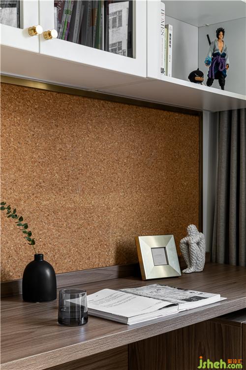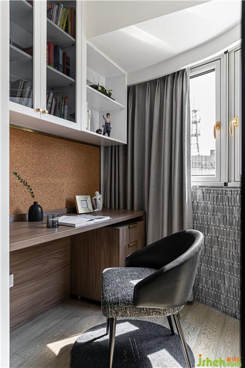作為男孩房的附屬空間,將書房的功能置入,阻絕干擾,營造良好的學(xué)習氛圍.
