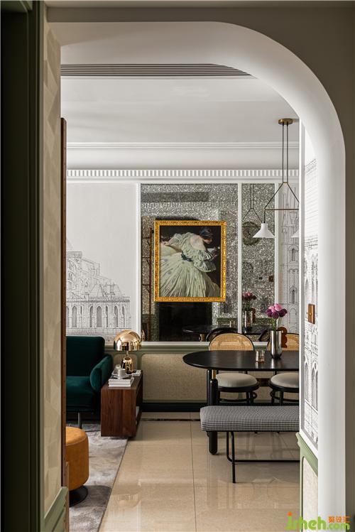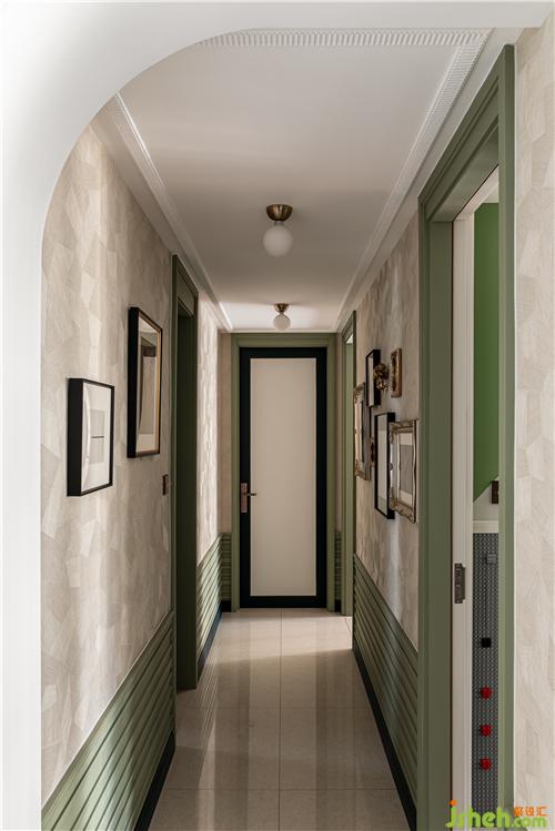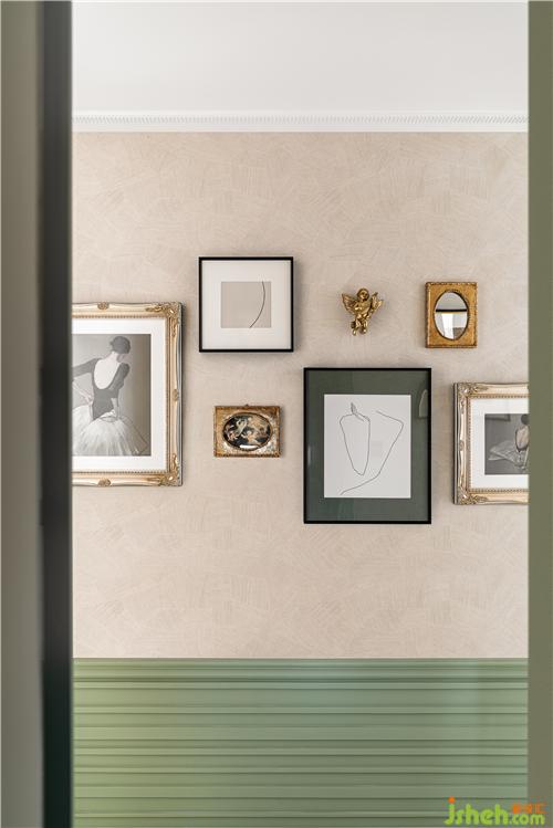 復(fù)古精致的組合裝飾畫為過道渲染了濃厚的藝術(shù)氣息.