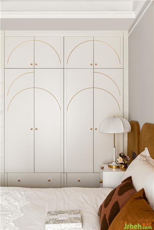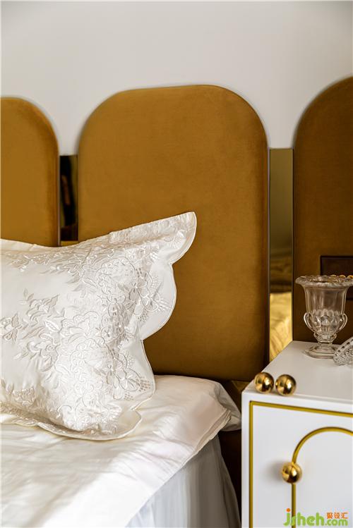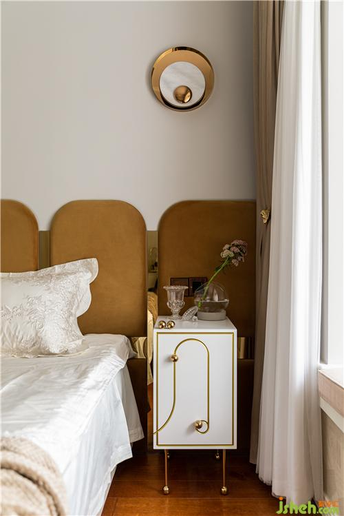 俏皮的白色床頭柜搭配金屬把手與空間的黃銅元素盡顯精致.