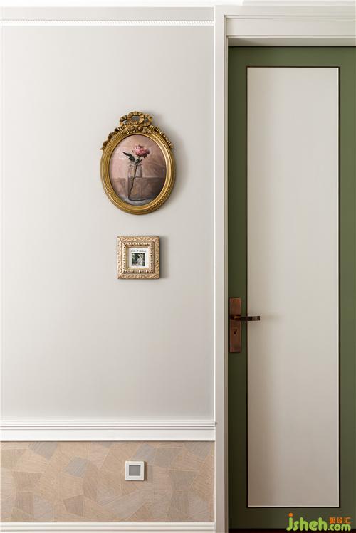 門后是衣帽間,房門進(jìn)行改色,與其他空間統(tǒng)一.