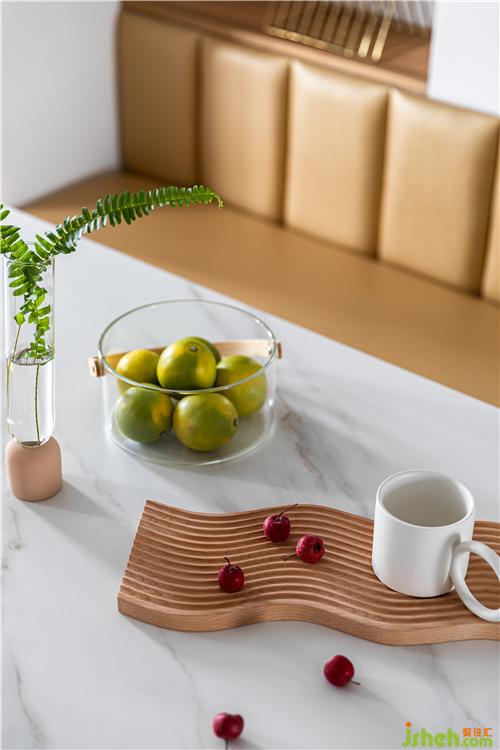 利用廚房轉(zhuǎn)角的承重柱,做了一個小吧臺,既是廚房臺面的一個延伸,又滿足了早餐桌的功能.