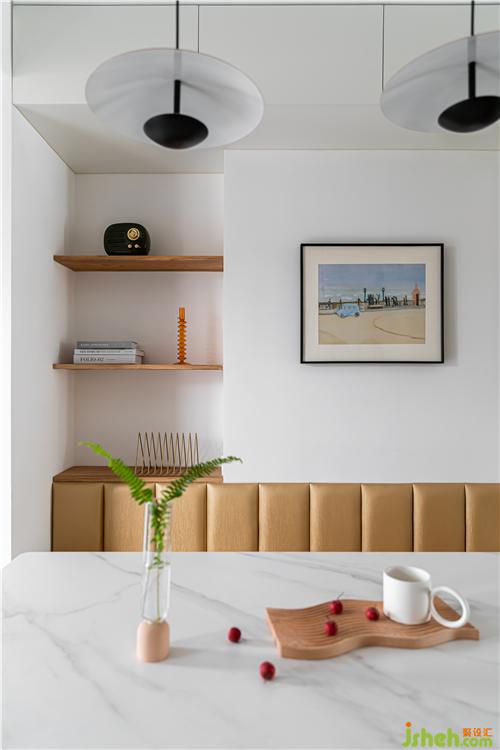 卡座的黃色軟包,使空間更有張力和彈性.