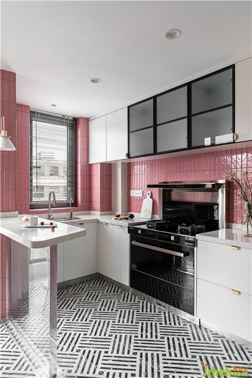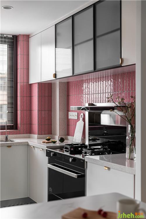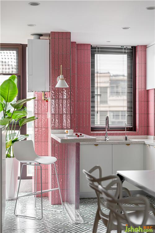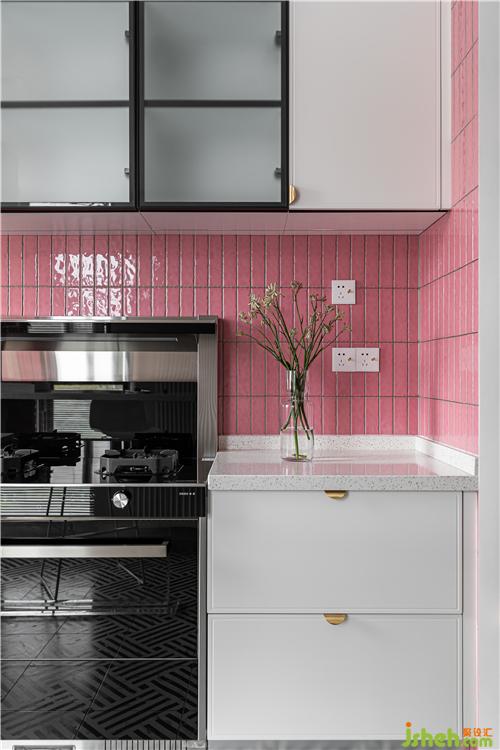 廚房的最大的亮點(diǎn)就是大面積小粉磚的鋪貼,將這個小小的廚房襯的溫馨自然.