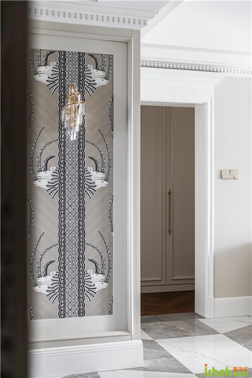 精致生動(dòng)的犀牛墻紙,與水晶壁燈搭配,典雅與奢華的沖突之美.