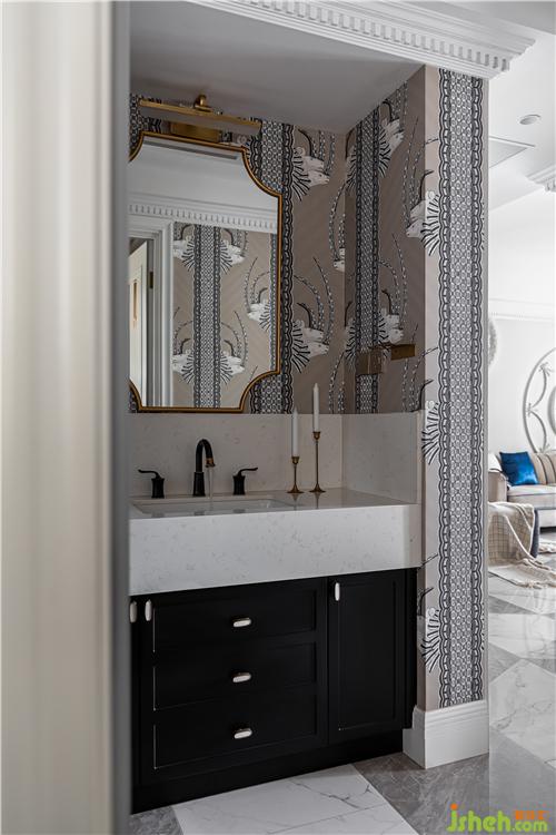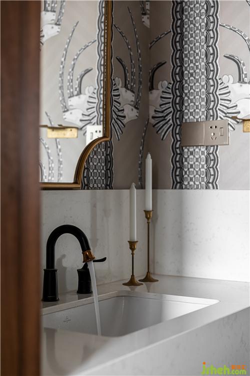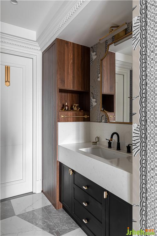 干區(qū)室內(nèi)設(shè)計師延續(xù)客餐廳的優(yōu)雅復(fù)古風(fēng)格,更增添了幾分精致感,生活的儀式感從晨起洗漱開始...