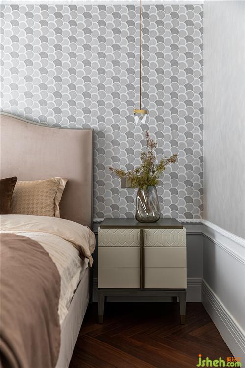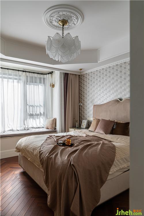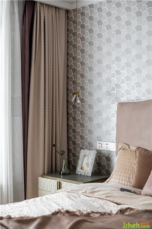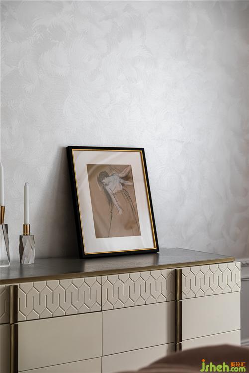 進(jìn)口圓點壁紙和絲絨藝術(shù)涂料的光澤質(zhì)感為原本溫潤的空間帶來精致時髦感;石膏雕花燈盤、藝術(shù)手工玻璃吊燈、羅馬桿紗簾,溫柔且夢幻,優(yōu)雅而愜意,無不散發(fā)著輕奢的高級感.
