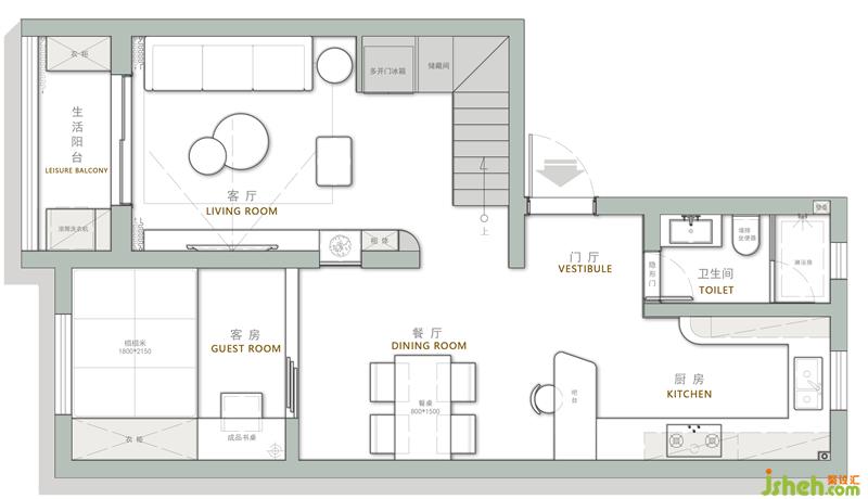 3. 廚房開(kāi)放,模糊界限,增加各個(gè)空間的互動(dòng)性.