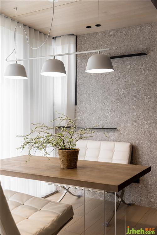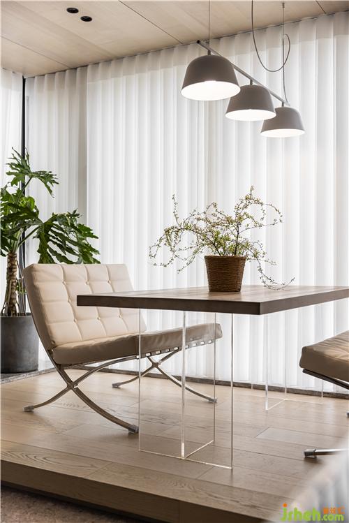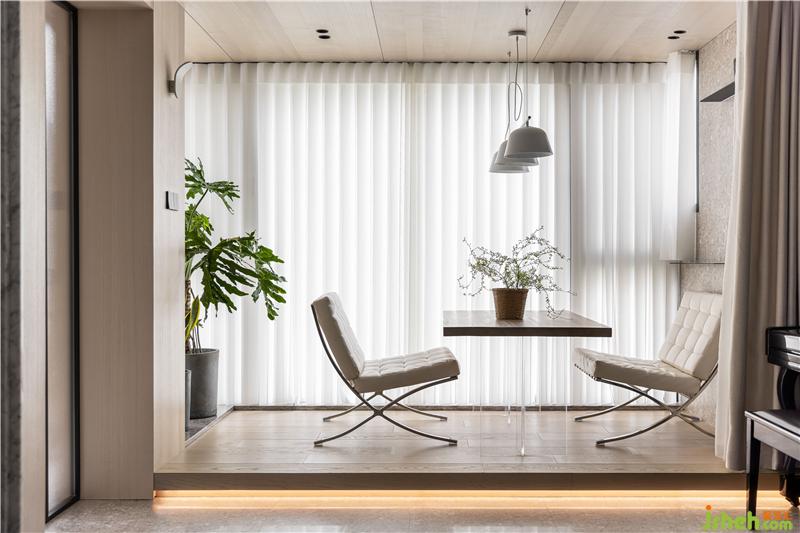 晨曦或午后,光線從白色夢(mèng)幻簾穿透到室內(nèi),暖色木飾面在燈光的映襯下為空間增添溫度,休閑沙發(fā)桌椅組合的配置,豐富了休閑陽(yáng)臺(tái)的功能.