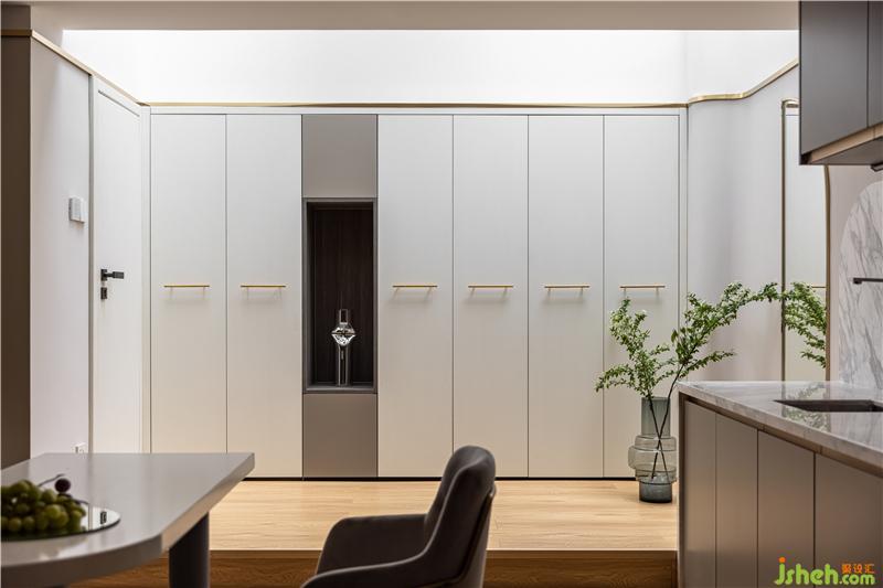 在人與空間的互動(dòng)中,整體色彩的轉(zhuǎn)折趨于平緩,用利落的柜體顏色搭配金屬線條貫穿整個(gè)地下室空間呈現(xiàn)現(xiàn)代而又簡約的美感.