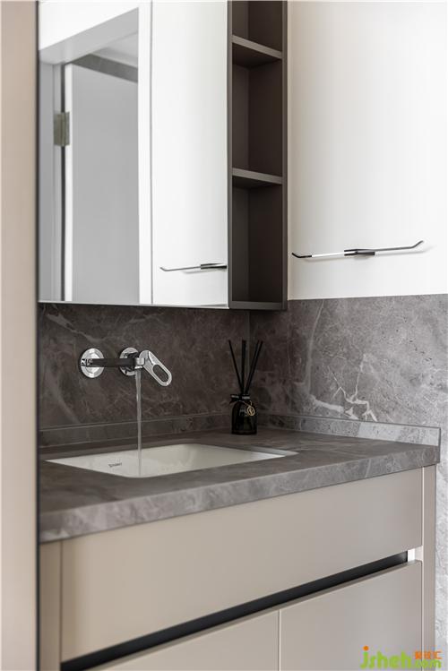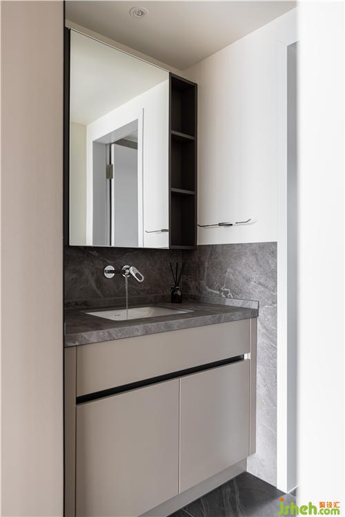 次衛(wèi)采用干濕分離設計,提高空間利用率. 壁掛鏡柜為干區(qū)提供足夠的儲物空間南京室內(nèi)設計師. 選用臺下盆、嵌入式水龍頭,避免衛(wèi)生死角,實用美觀.