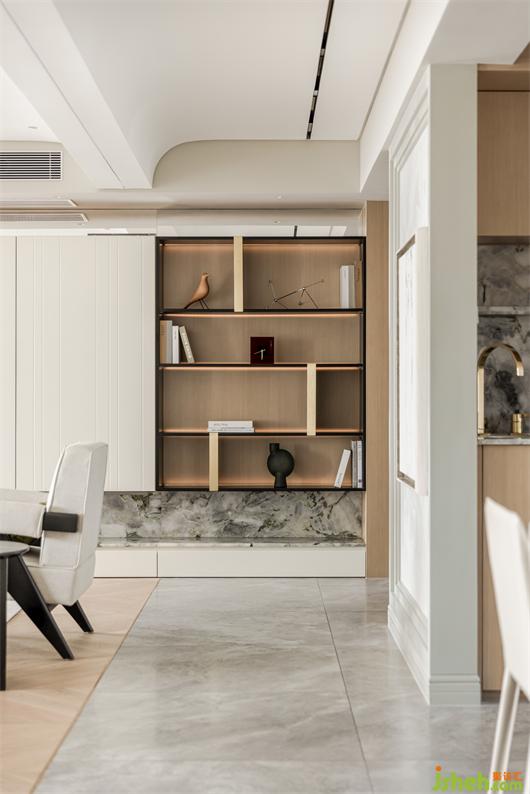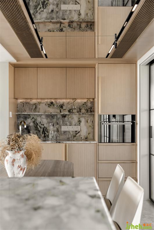 寬敞的空間大面積采用柔和的白色和木飾面色調(diào),內(nèi)飾的每一個(gè)細(xì)節(jié)都完美契合,不僅舒適,而且美感十足。冷翡翠的石材點(diǎn)綴包裹,花漾美作讓整體淺色調(diào)的空間增添了豐富性。吊頂最低處采用木飾面與鏡面結(jié)合處理,讓室內(nèi)層高自然得到擴(kuò)展,原本壓抑的高度豁然開朗了。