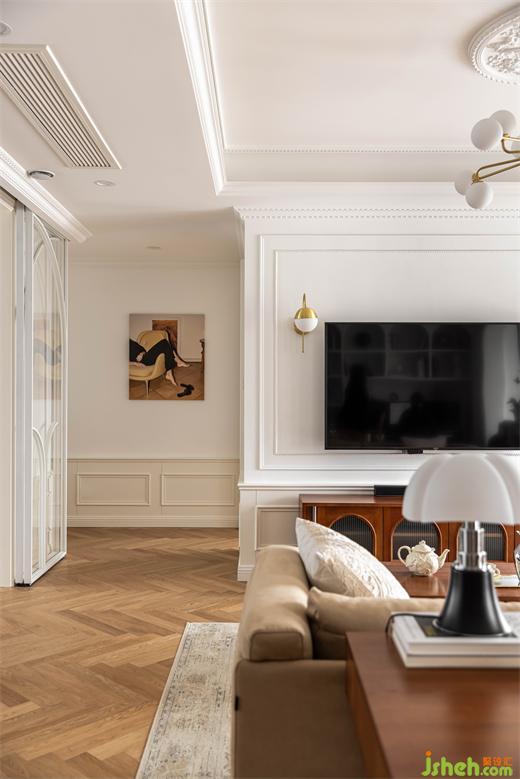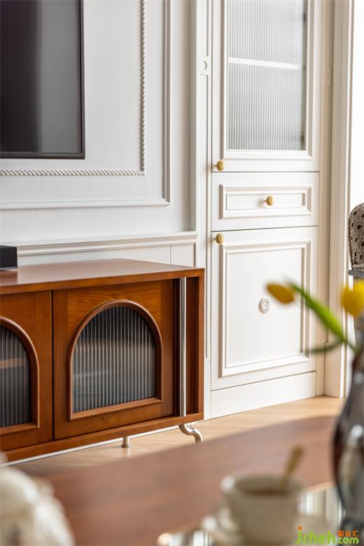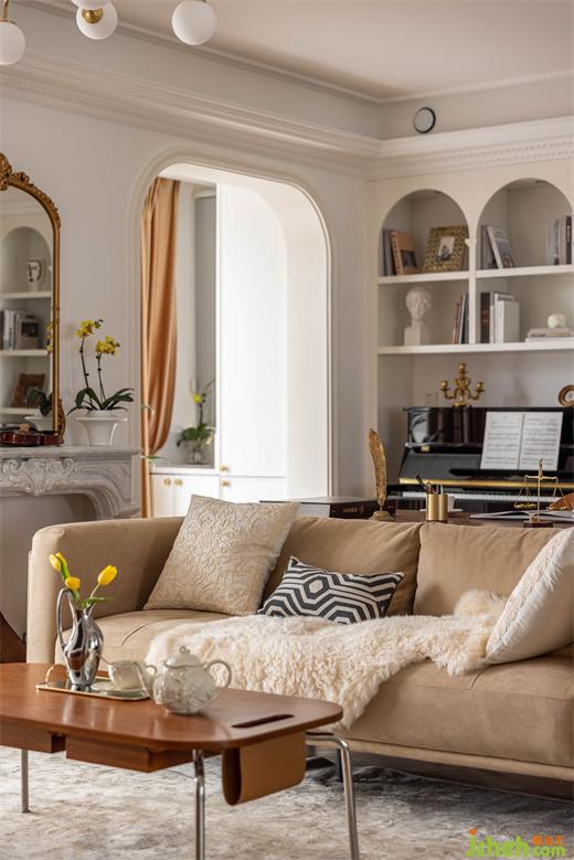 溫柔的奶油白色系配上溫潤的木質(zhì)材料,南京裝修設計公司整體客廳空間彌漫著溫柔優(yōu)雅的氣息。兩扇落地窗保證了客廳采光,整體空間盡顯寬闊明亮。