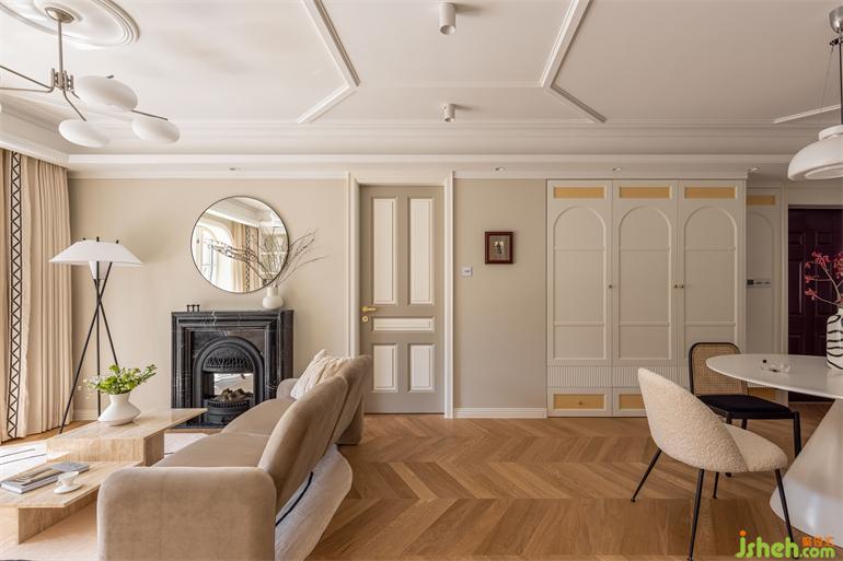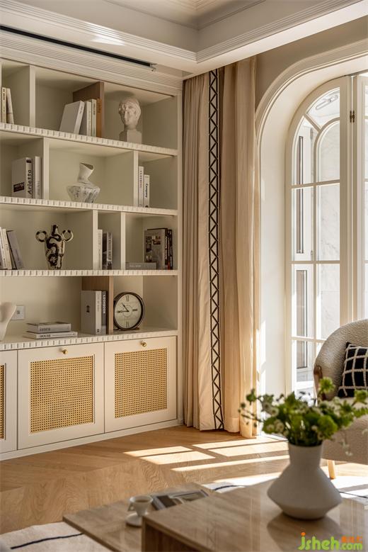 1. 客廳書柜、壁爐、沙發(fā)圍坐休閑感