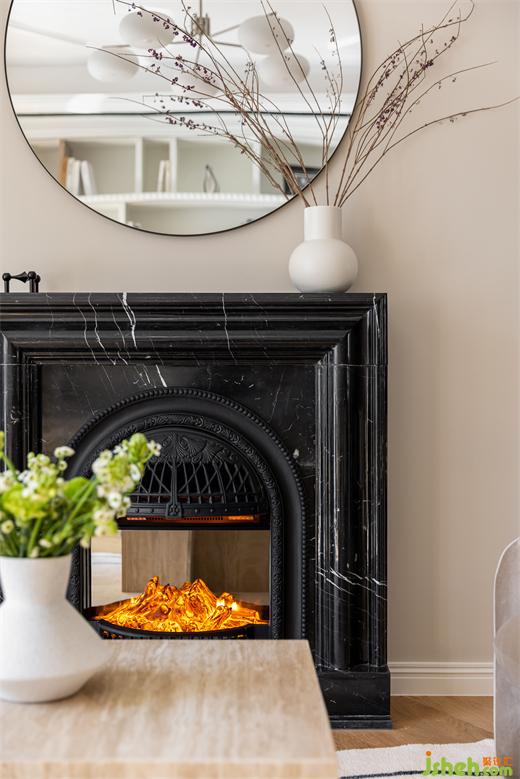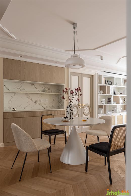 餐邊柜木色與仿大理石臺面搭配,簡約大方。